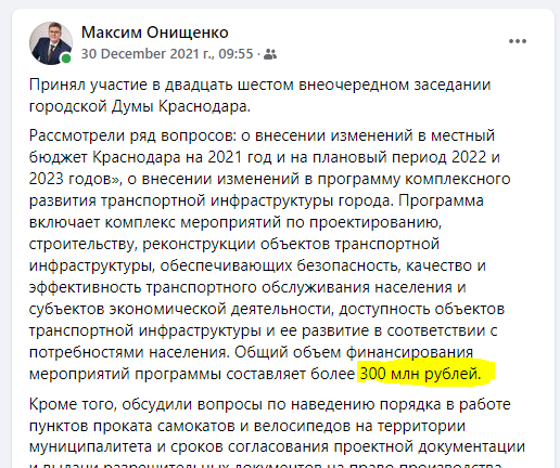 О том, как внимательно наши депутаты принимают важные документы - вот вам наглядный пример. Депутат Максим Онищенко пишет у себя в FB пост, при этом указывает, что речь идет про 300 млн.рублей. Хотя на самом деле в общий объем финансирования мероприятий, указанных в ПКРТИ - 300 млрд. руб.