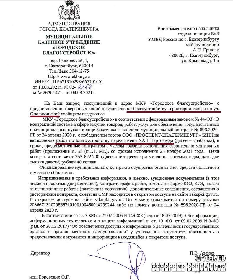 Впрочем, может, всё объясняется тем, что подписавший данный ответ Павел Азанов был назначен директором МКУ «Городское благоустройство» вместо уволенного Антона Козлова совсем недавно, и ещё не разобрался в том, что и кем благоустраивается? Да и вообще является выходцем из Тюмени — откуда ему знать, где в Екатеринбурге улица Опалихинская, а где парк XXII Партсъезда...