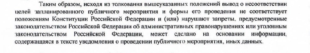 Однако ни намеренное исключение организаторами из тематики митинга поддержки Алексея Навального, ни доводы о том, что 6 февраля никаких законов, запрещающих выходить с плакатом «Нет [Роскомнадзор]» не было (да и сейчас в ряде регионов есть случаи прекращения судами дел в отношении пикетчиков, вышедших с плакатом «Нет [Роскомнадзор]»), ни МОБ, ни суд в итоге не убедили – судья Юлия Голова заняла позицию министерства и постановила митинг 6 июня не согласовывать.