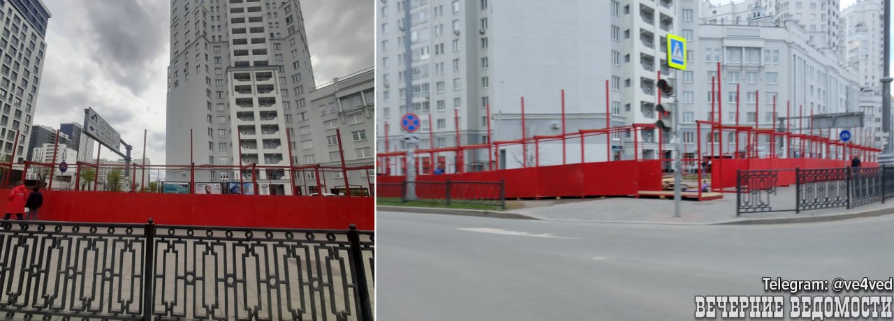 В Екатеринбурге огородили стройплощадку на углу улиц Татищева и Мельникова — в месте, где три года назад был снесён особняк Павла Яркина.