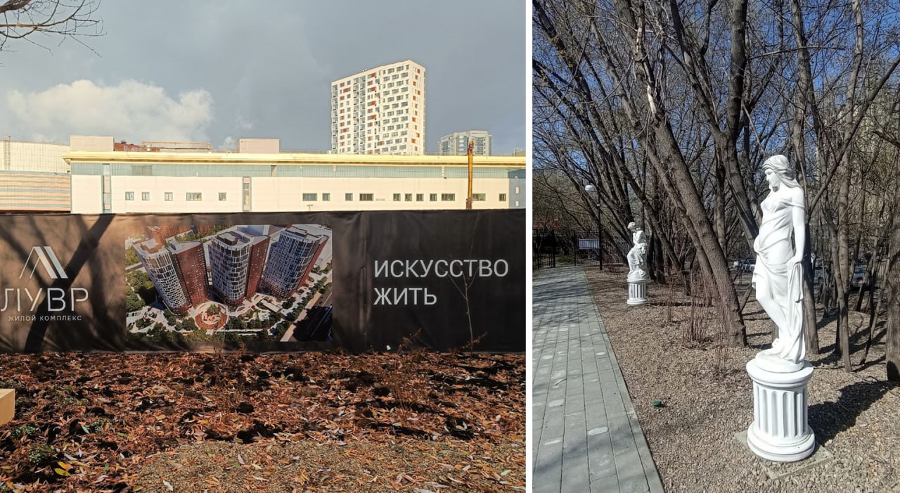 Территория возле строящегося жилого комплекса «Лувр» на улице Тверитина была благоустроена в прошлом году — в СМИ набережную со скульптурами окрестили «секретным парком». Издание Е1 сообщало, что территорию за свои деньги облагородил бизнесмен Андрей Гавриловский, а проект делала его дочь Виктория Гавриловская. В качестве объектов благоустройства помимо скульптур (сообщалось, что их привезли из Краснодара) в парке установили немецкое пианино и дверь от настоящего банковского сейфа.