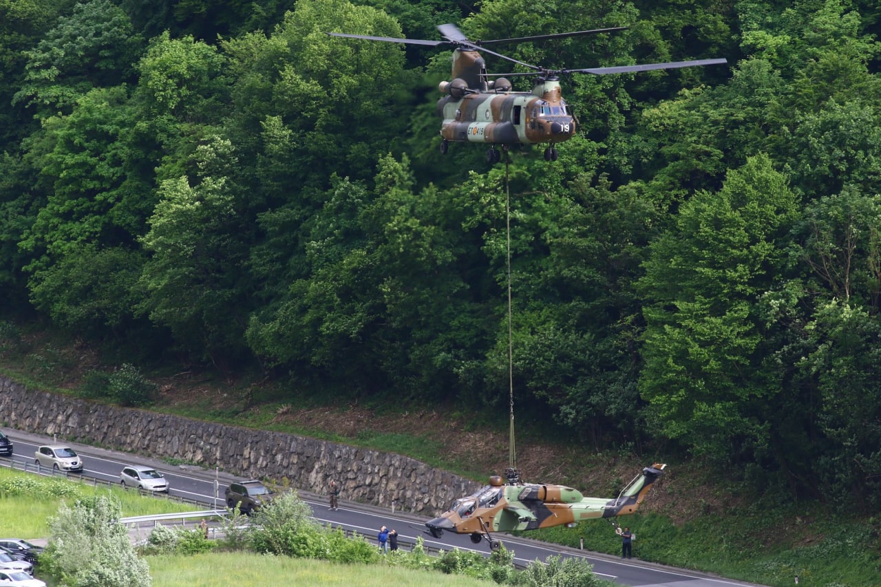 🇪🇸 CH-47D Chinook испанских ВВС перевозит на внешней подвеске ударный вертолет Eurocopter EC 665 Tiger