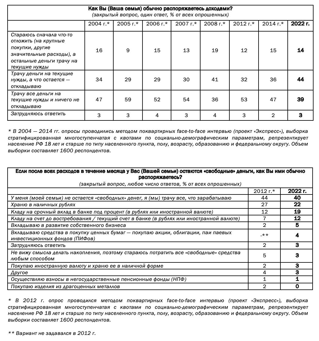 Совсем не откладывают деньги и тратят все на текущие нужды 39% россиян, за 10 лет их доля сократилась на 14 п.п. Основная стратегия у населения сегодня — откладывать после всех необходимых трат — 44% (+12 п.п. к 2012 г.).