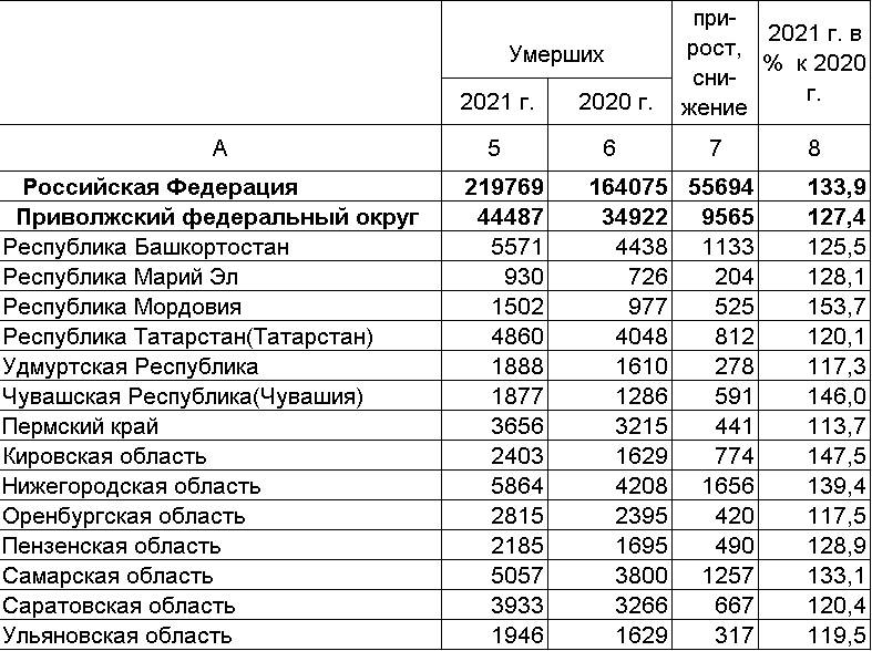 Татарстан потерял лидерство по избыточной смертности в ПФО, добытое в 2020-ом году. Поклонники управленческих талантов Рустама Минниханова старательно обходят стороной тот факт, что Татарстан справился с пандемией коронавируса хуже всех: рост смертности на 27% как бы намекает. В январе 2021-го в республике умерло на 812 человек больше, чем год назад.