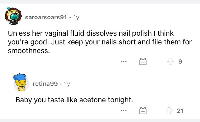 Картинка по теме — из длинного-длинного обсуждения секса с лаком на Reddit.