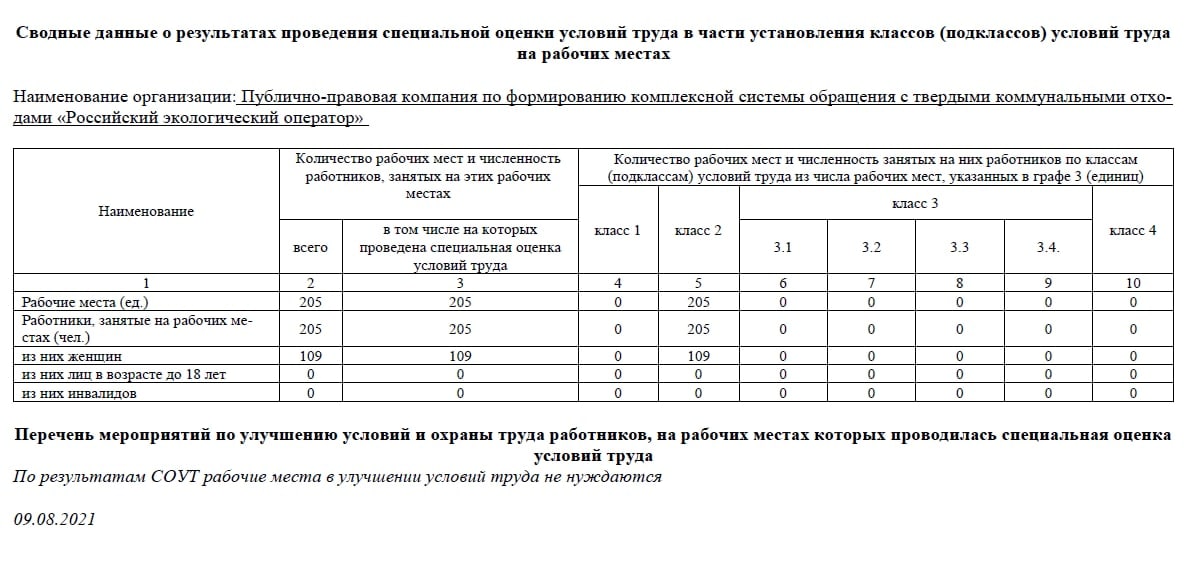 На изображении: один из немногих публичных документов РЭО на сайте компании «О результатах проведения специальной оценки условий труда». Об информативности и следовании принципам устойчивого развития судите сами.