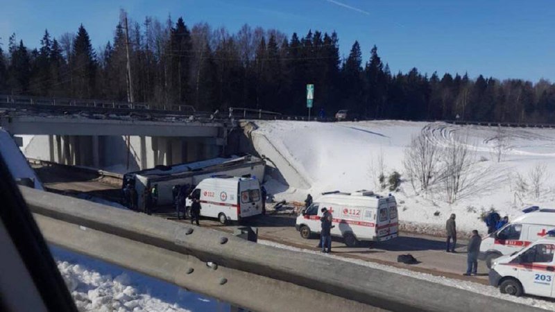 В Подмосковье автобус упал с эстакады. Есть пострадавшие.