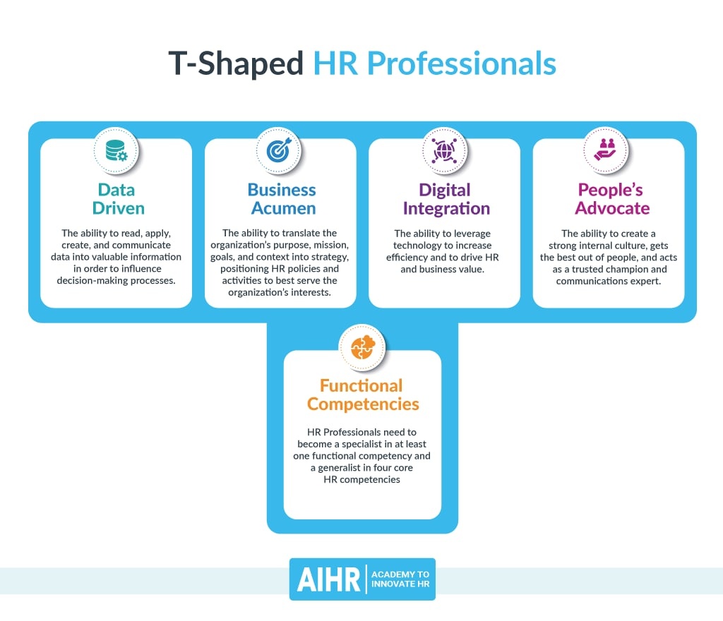 Т-образный HR-специалист имеет глубокое представление об основных функциональных компетенциях, имеющих непосредственное отношение к его работе (рекрутинг, адаптация) , хорошо разбирается в темах: L&D, компенсации и льготы или HR-аналитика (на картинке – вертикаль буквы Т).