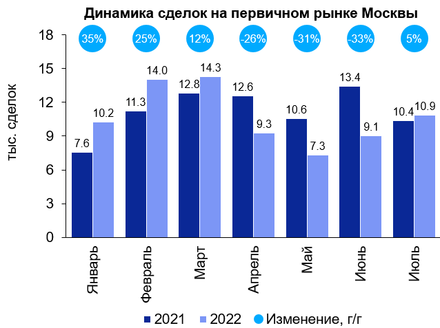 🏗️Перелом тренда – рост первичных сделок в Москве в июле 2022. Что вызвало разворот и насколько устойчива динамика?