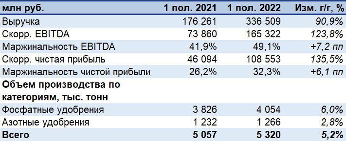 📈 Ждем от компании сильных результатов за 2П22 на фоне ужесточения Китаем экспортных квот на фосфатные удобрения на 2П22 – до 3 млн т (-39% г/г).