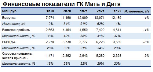 • Компания ранее опубликовала сопоставимую г/г выручку в 1п22 (12 млрд руб) и падение на 6% г/г в 2к22. Причина – сокращение COVID-госпитализаций.