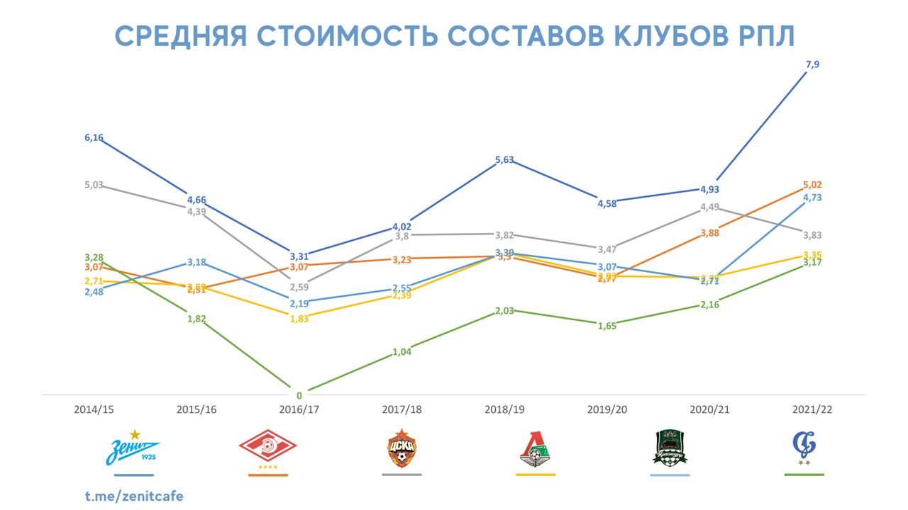 Ради интереса изучили известный сайт немецких школьников, используемый одной прэскорт-атташе в качестве ориентации на трансферном рынке, на предмет средней стоимости составов «Зенита» и всяких там столичных середняков.